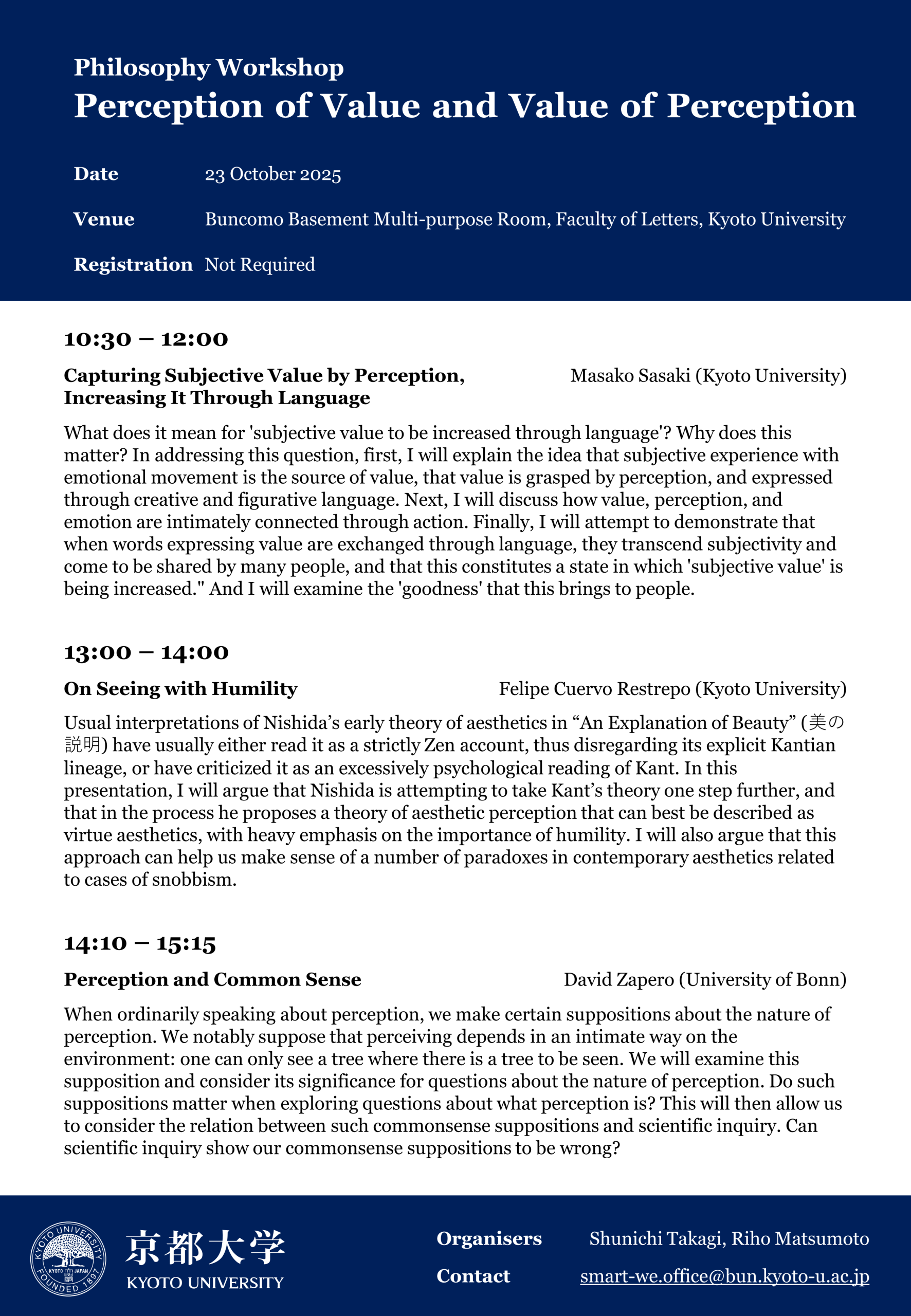 Workshop “Perception of Value and Value of Perception”開催のお知らせ